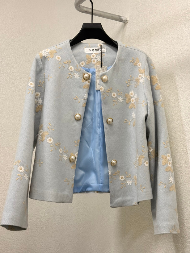 کراپ کت زنانه فوتر گلدوزی شده 6 دکمه ساده و لمه دوزی (کد 445)